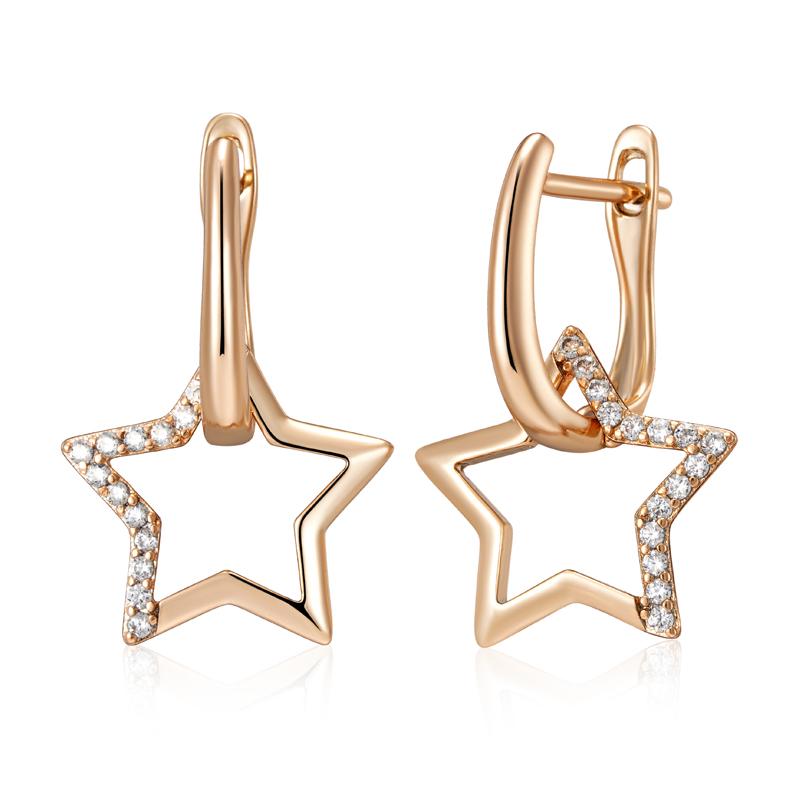 Fashion Glossy Gold Color Star Dangle Earrings For Women Paved Natural Zircon Accessories Daily Fine Jewelry