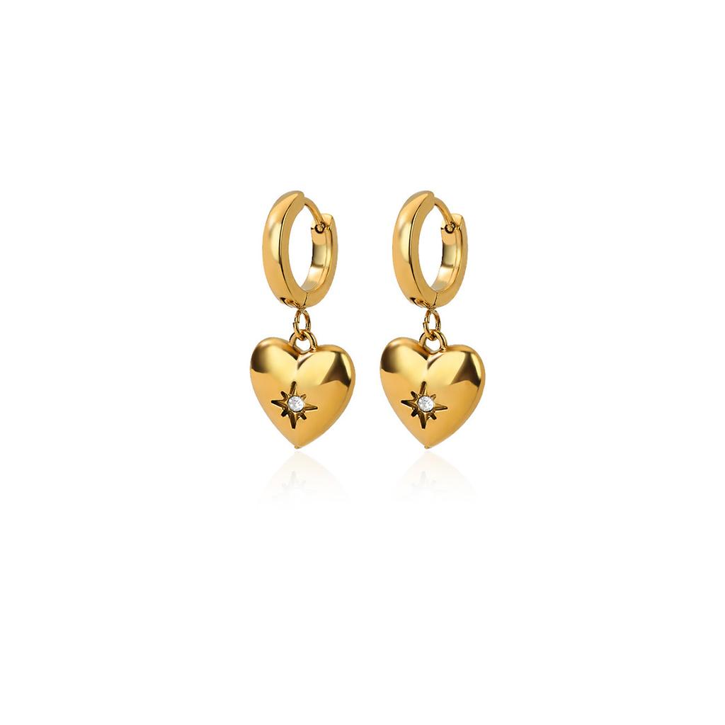 Luxury Zircon Heart Star Earrings For Women Gold Color Stainless Steel Heart Drop Earring Fashion Aesthetic Christmas Jewelry