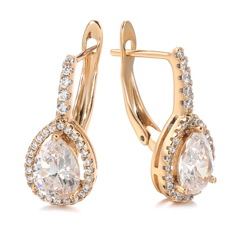 Roségoldene Wassertropfen-Ohrringe für Damen Natürlicher Zirkon Braut-Ohrringe Hohe Qualität Täglicher Feinschmuck