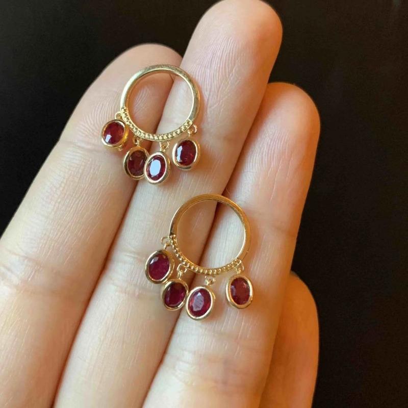 Vintage Stil Roter Edelstein Kreisförmige Quastenohrringe Für Frauen Kreativer Charme Stecker Ohrringe Bankette Leichte Luxuskleidung Schmuck