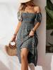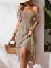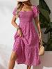 New Wish Bestseller Square Neck Bubble Sleeve Floral Ruffled Dress Long Dress