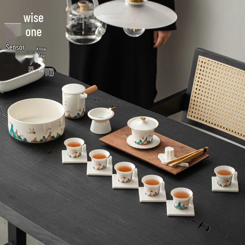 Auspicious Crane Mountain View 20-Piece Ceramic Tea Set