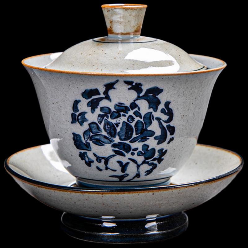 Shangqi Blue and White Peony Ceramic Gaiwan Tea Bowl, 180ml