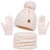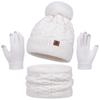 3Pcs Women Winter Hat Scarf Gloves Set Christmas Fur Ball Teenager Beanie Neck Warmer Suit Pompom Knitted Woman Men Cap Set