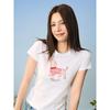 HACR | Harshandcruel Sketch Hand-Painted Puppy Stretch Silm round Neck Shoulder Short Sleeve T-shirt for Women