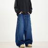 Kisko American Retro Deconstructed Design Wide-Leg Scimitar Jeans for Men and Women, Distressed Loose Straight Casual Pants