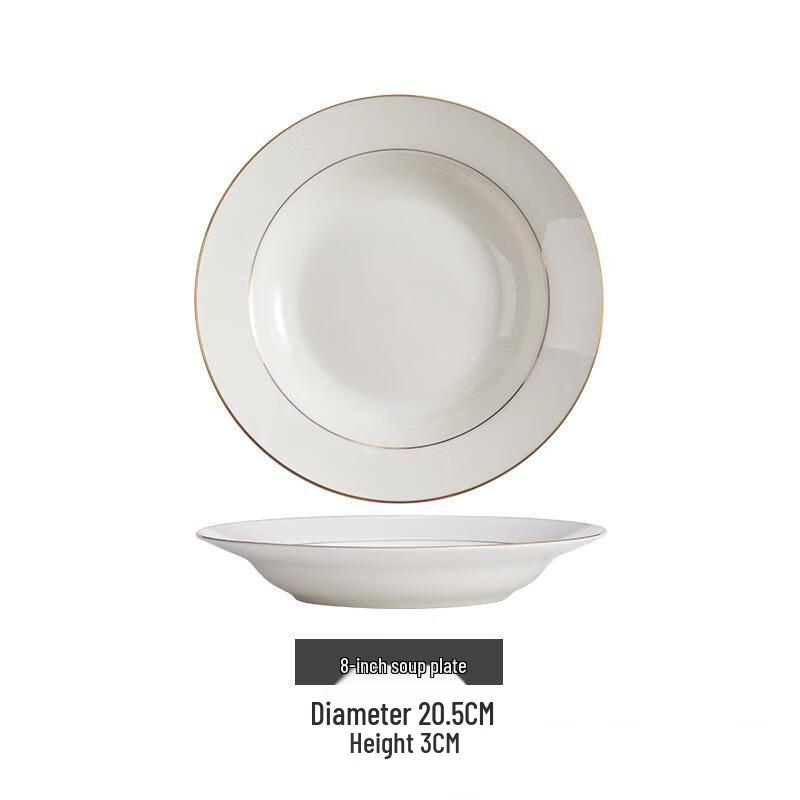 LISM Nordic Style Gold Rim 8-inch White Ceramic Dinner Plates (Set of 2)