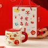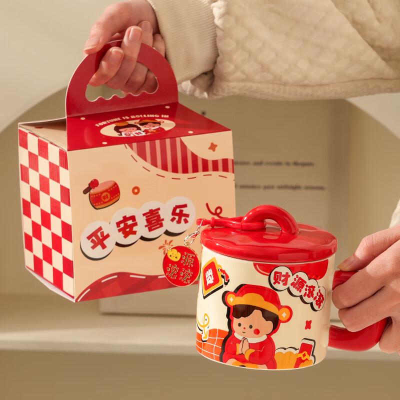 Jingci Kreative Keramiktasse mit Deckel - Rolling Wealth Geschenkset