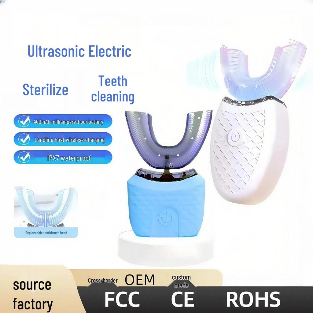 Adult U-Shaped Electric Sonic Toothbrush with Timer and Soft Silicone Bristles