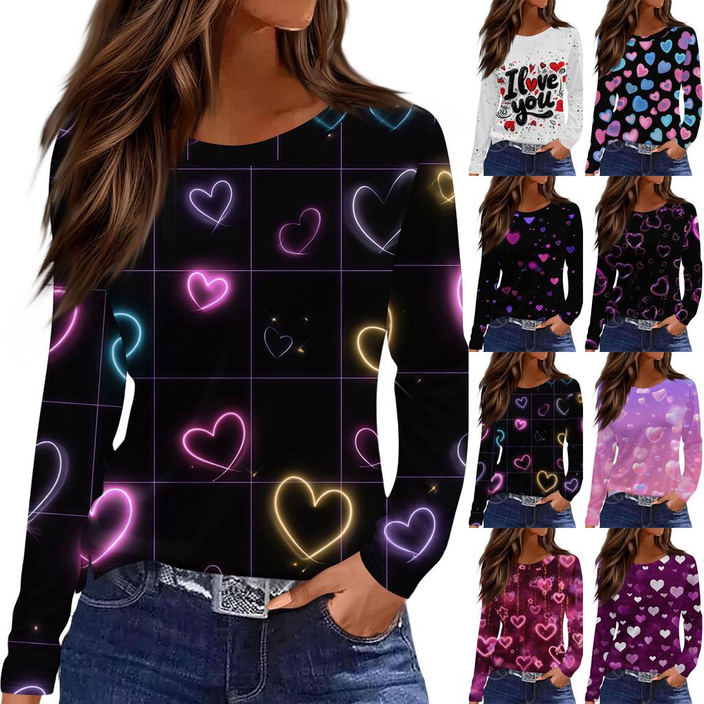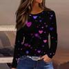 Damen Modisches Langarm-Rundhals-Oberteil mit Schlitzsaum und Valentinstag-Herzprint