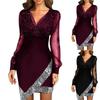 Spring V-neck Solid Color Mesh Long Sleeved Elegant Dress