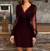 Damen Mesh V-Ausschnitt Pailletten Mode Elegantes Kleid Slim Fit Sexy Kleid