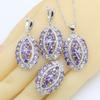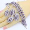 Geometrische Lila Zirkon Farb Schmucksets Für Frauen Armband Ohrringe Halskette Anhänger Ring Hochzeit Geburtstagsgeschenk