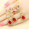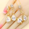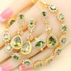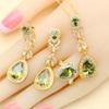 Grüner Kristall Wassertropfen Vergoldete Schmucksets für Damen Hochzeit Armband Ohrringe Halskette Anhänger Ring Party Geschenk
