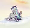 Huitan Luxury Women'S Ring Multicolored Rectangular Cubic Zirconia Chic Wedding Engagement Band Fashion Jewelry Green Colors
