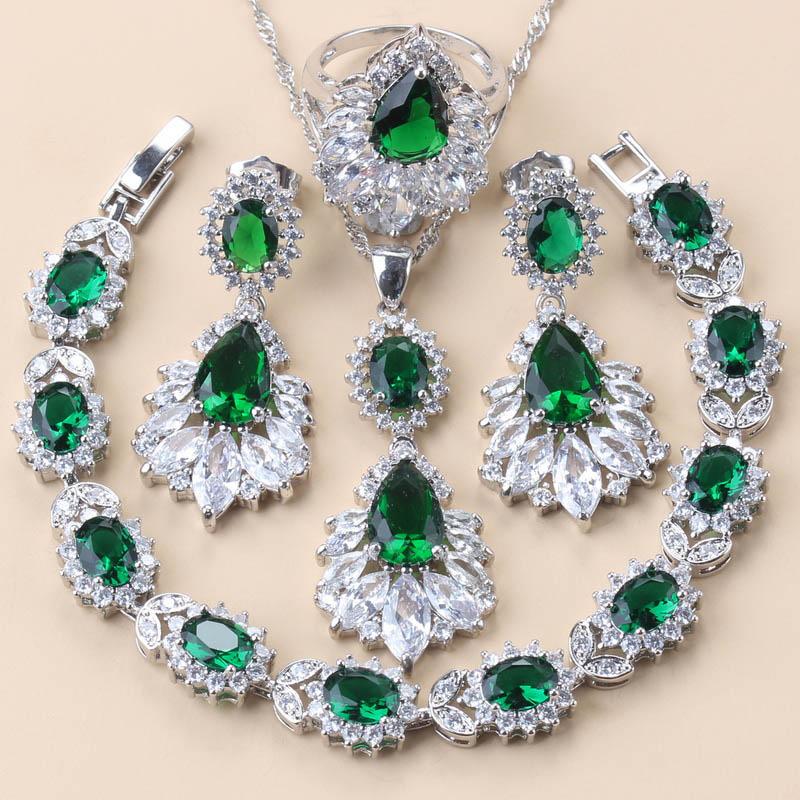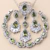 New Big Necklace Jewelry Green Zircon Long Earrings Sets For Women Set Wedding Ring Bracelets Free Shipping