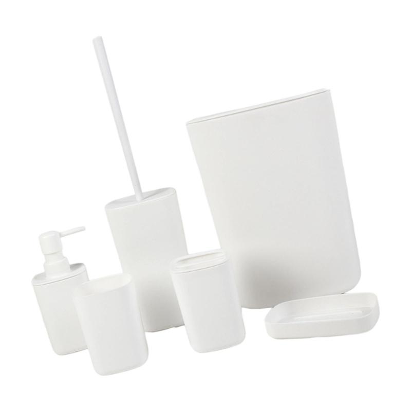 6-teiliges Badezimmer-Grundausstattung-Set Kunststoff Zahnbürstenhalter Abfallkorb Planer Wasserdicht Badezimmer Aufbewahrungslösung