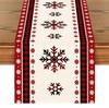 Festlicher Leinen-Weihnachtstischläufer mit Schneemann-, Weihnachtsmann- und Schneeflocken-Drucken in Rot, Weiß und Grün