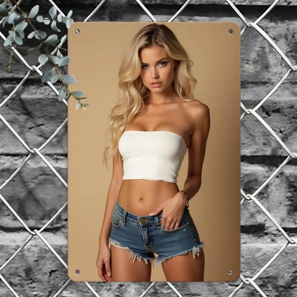 Vintage Metall Wandkunst Blonde Dame Retro Eisen Deko für Zuhause Büro