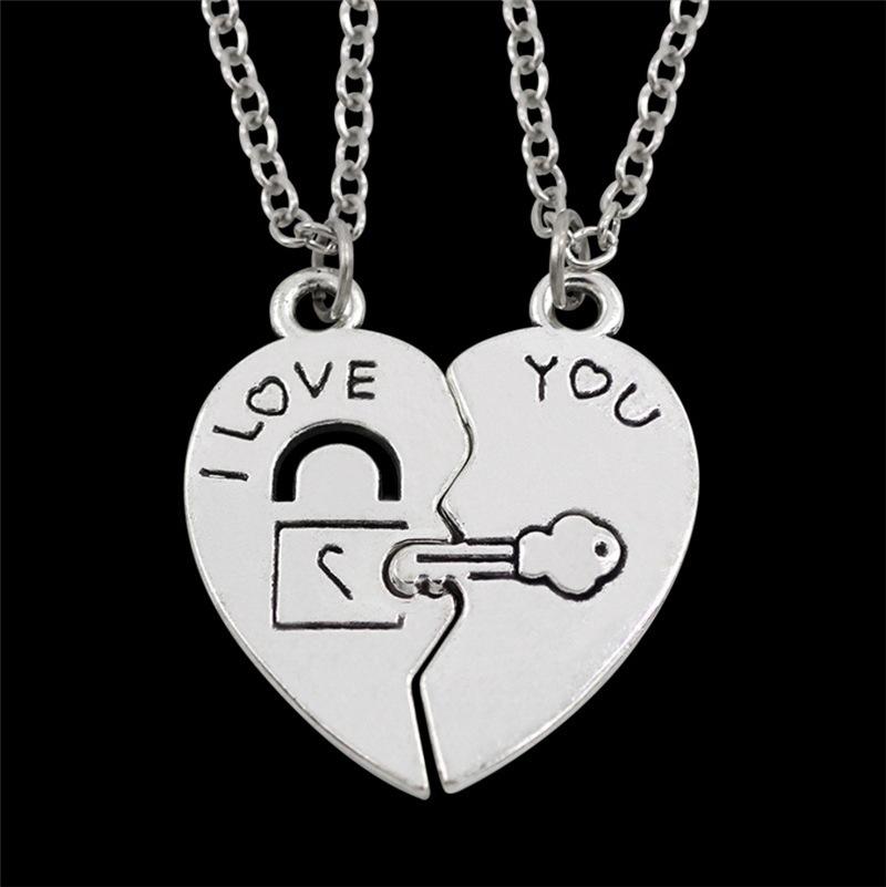 2Pcs Couple Lock Key Heart Puzzle I Love You Pendant Couple Necklace Pendants Necklaces For Lovers Valentine'S Day Jewelry Gifts