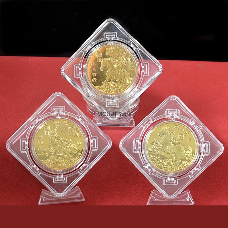 Gedenkmedaille zum Jahr des Pferdes, Tierkreiszeichen Pferd, Souvenir, massive Münze, Heimdekoration, quadratische, drehbare Acryl-Ornamente, Geschenk
