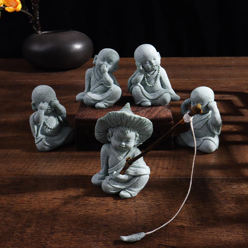 Blauer Sandstein Mini Mönch Skulptur, Desktop Dekoration für Wohnzimmer, Bücherregal, Eingang und Heimdekor