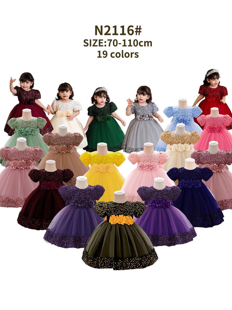 Mädchen Kurzarm Pailletten Puffrock Prinzessinnenkleid - Kinder Festkleidung