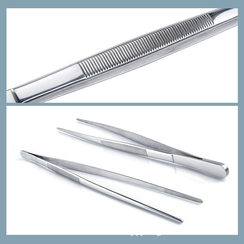 12Inch Kitchen Tongs Stainless Steel Culinary Precision Tweezer Cooking Tongs for Barbecue Food Tongs Thickened Daily Clamp Tool