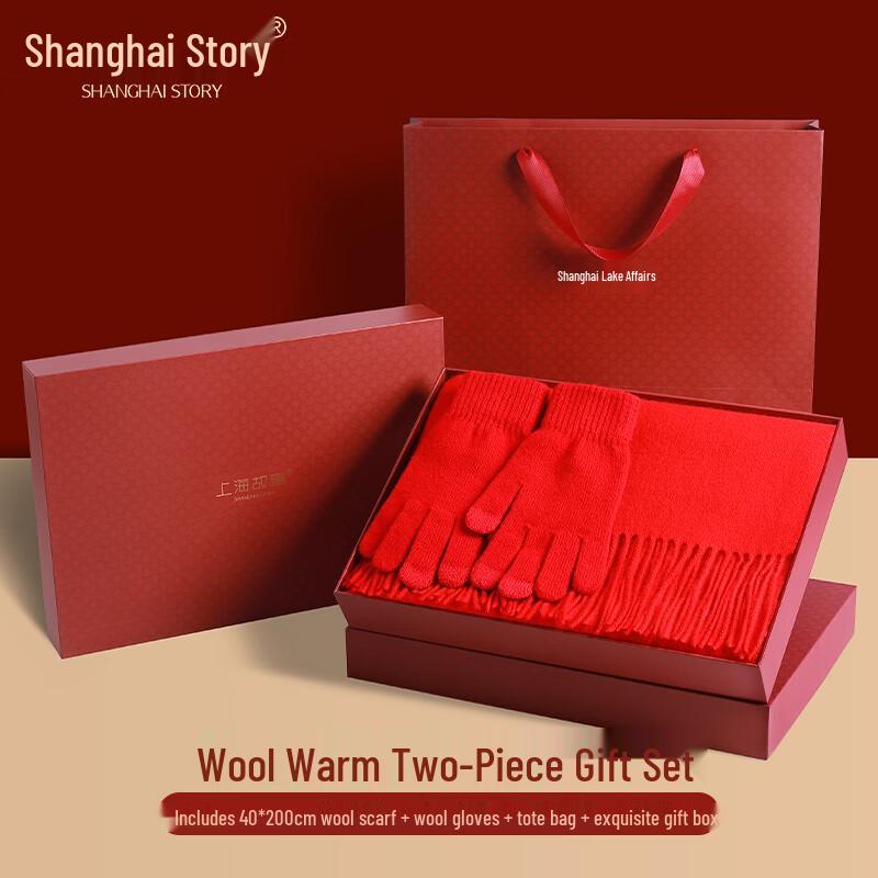 Shanghai Story 100% Wool Scarf and Gloves Gift Set