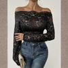 Damen schulterfreies einlagiges Spitzen Slim-Fit T-Shirt Langarm-Top