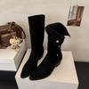 Rindslederversion Damen Kurzstiefel gefaltete Western-Kurzstiefel Damen Herbst und Winter spitz dicker Absatz dünne Mode Stiefel