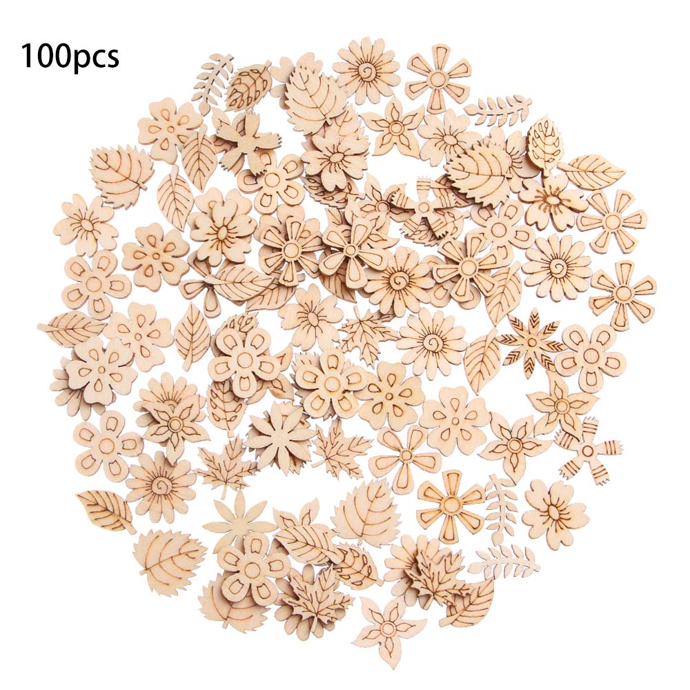 Mixed Pattern 100pcs Natural Paint Gift DIY Scrapbooking Embellishments Wooden Decoration Doodle Educational Wood Slice