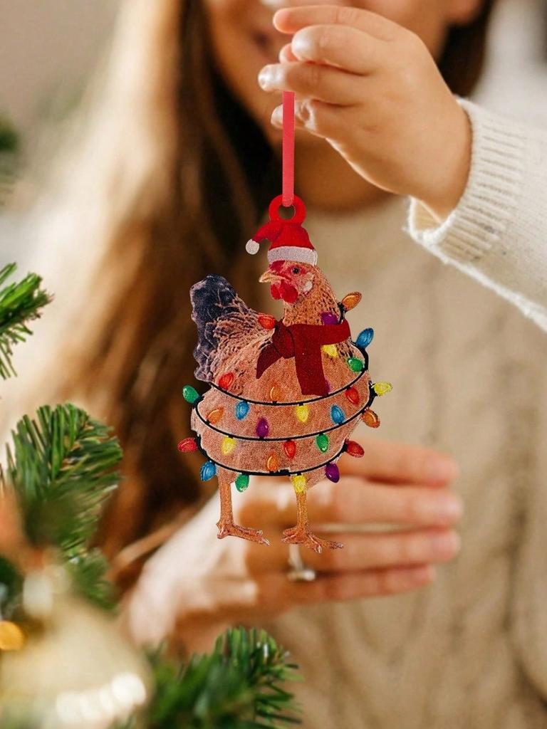 Cute Christmas Chicken Hanging Decoration Acrylic Rooster Ornament with Santa Hat & Scarf Pendant for Xmas Tree, Home&Party Gift