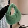 Pelz Damen Kleine Halbmondtasche Luxuriöse Warme Plüsch Handgelenktaschen für Damen Mode Pelzige Kurzer Griff Clutch Niedliche Damen Münzbörsen KTB