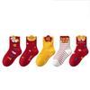 5pairs Breathable Kids Red Socks Creative Blessing Words Socks Zodiac Horse Socks Spring Festival