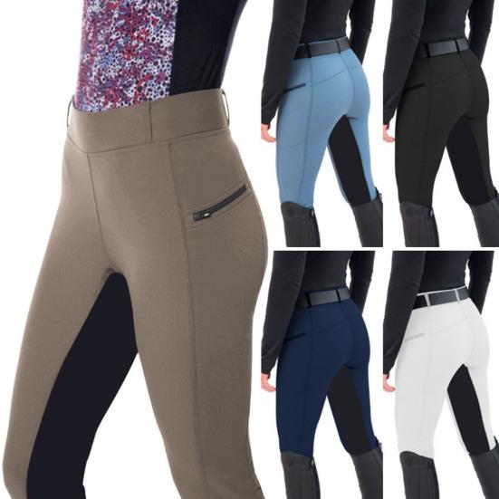Damenhose mit hohem Bund, farblich abgestimmtem elastischem Bund, Patchwork-Design, schmaler Passform
