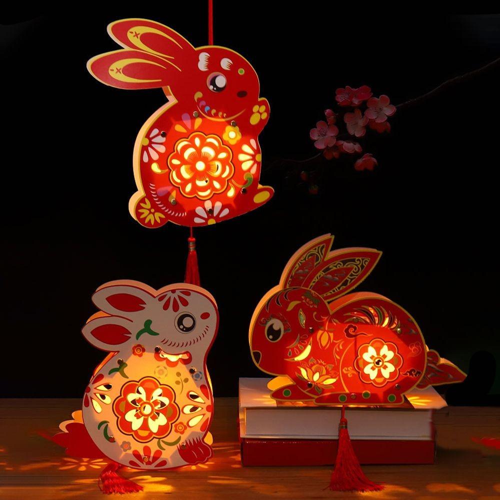 Cartoon Mid-Autumn Festival Lantern Antique Ancient Rabbit Flower Lantern Handmade Traditional Lantern DIY Material Package