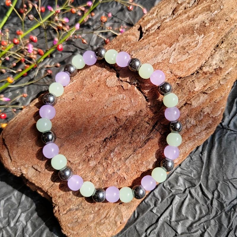 Set zur Verbesserung von Gleichgewicht und Konzentration - 6 mm Amethyst- und Fluorit-Imitationsedelstein Elastischer Schmuck, Perfekt für die Feiertage, ein Geschenk für Jungen und Mädchen