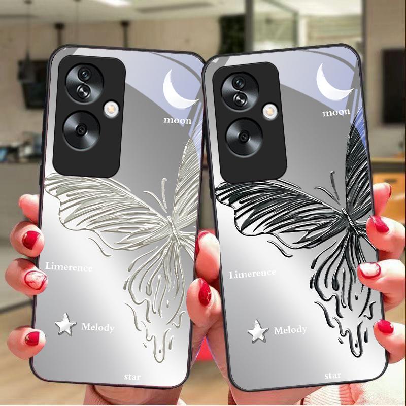 Metallischer Schmetterling für Oppo A79 5G 58 78 74 60 4G Reno 11F Realme GT 6 11 Note 50 10 C55 X2 Hartglas Schwarz Handyhülle