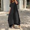 Baumwolle Leinen Damen Sommer Mode Übergroß Locker V-Ausschnitt Lang Kurzarm Maxi Kleid Größen S bis 5XL