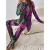 Euro-amerikanische Mode 3D Marmorierter Damen Vier-Jahreszeiten Langarm T-Shirt + Lange Hose Zweiteiler. Das perfekte Geschenk für Neujahr