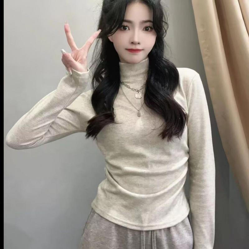 Autumn and Winter Thickened Velvet Half Turtleneck Versatile Bottoming Shirt with Slim Fit Short Warm T-shirt Tight Top