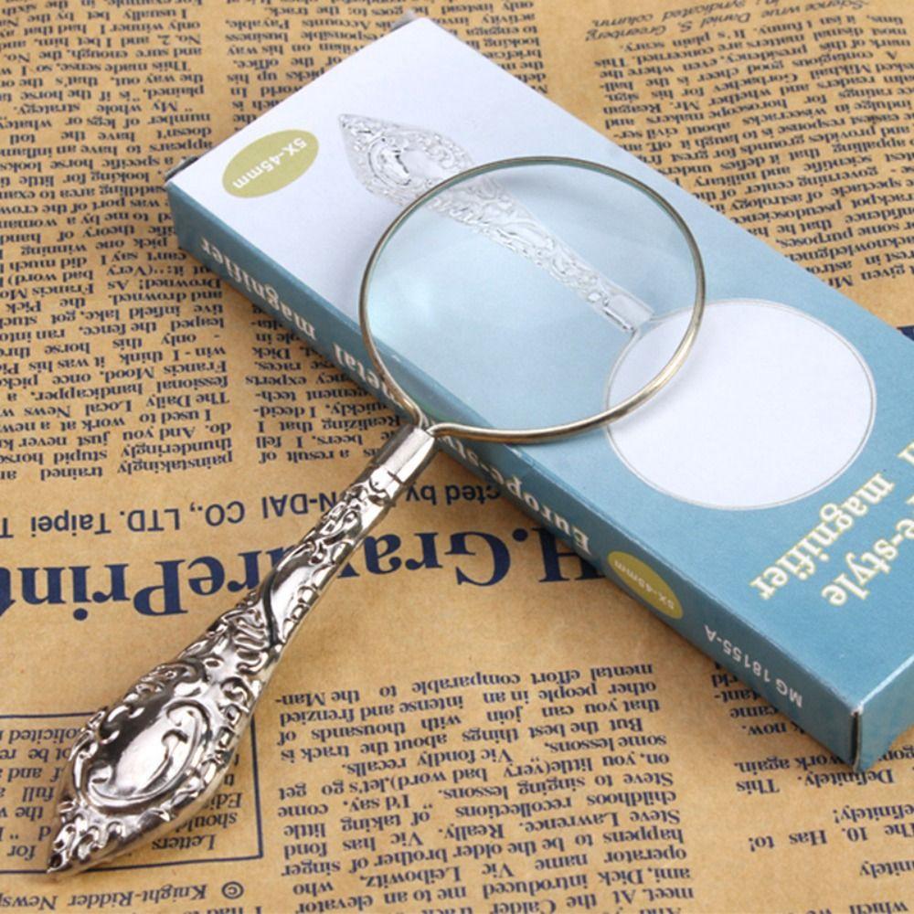 Metal Handheld Magnifier Delicate Pattern Magnifying Glass 5X Carved Magnifier Reading Book