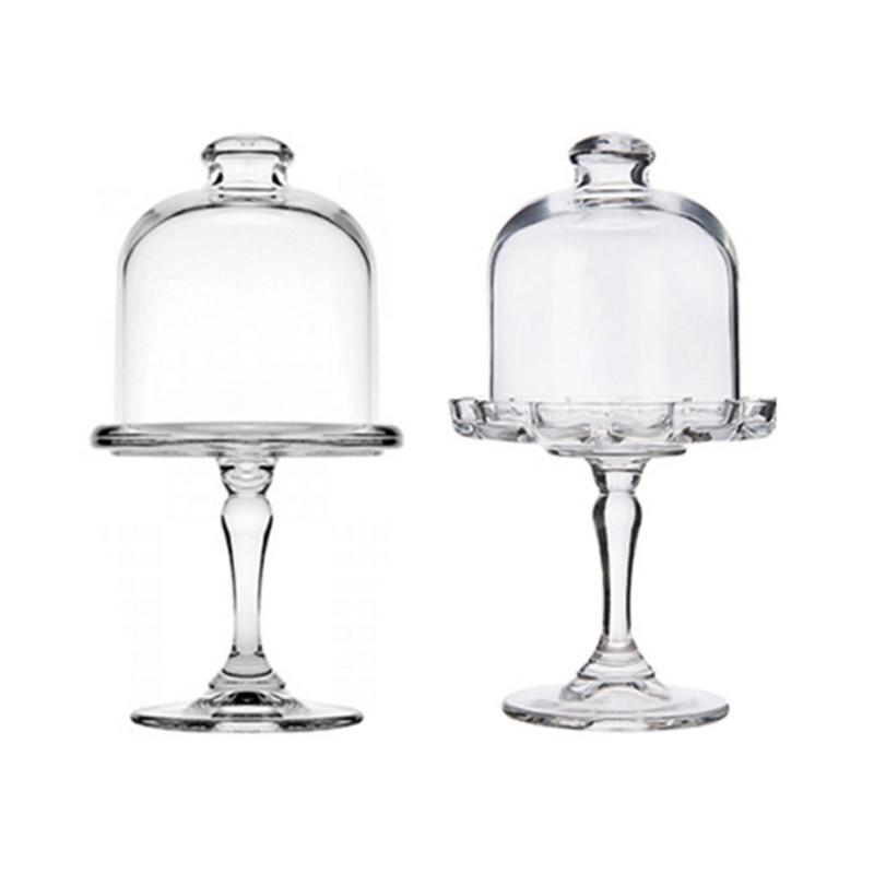 Servierplatte aus Klarglas mit hohem Fuß und Kuppelhaube, Cupcake-Ständer zur Präsentation von Süßwaren und Leckereien