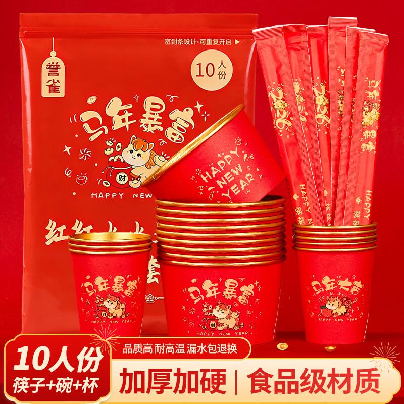 Youao Einweg-Dinnergeschirr-Set aus roter Goldfolie