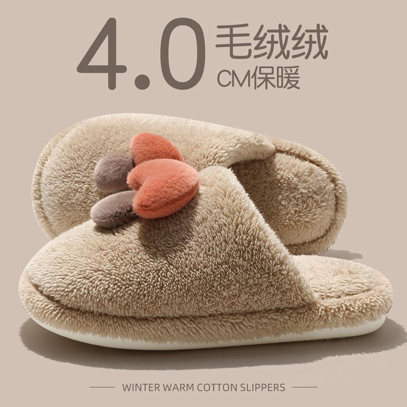 Kleine Pilz-Baumwollpantoffeln Damen neue Herbst- und Winter-Indoor-Hausplüsch rutschfest warm dicke Sohle Baumwollschlepp Damen