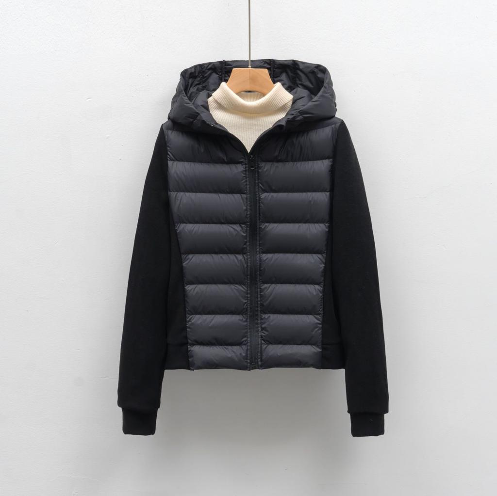 Kurze leichte Damen-Daunenjacke mit Kapuze, schlanke Daunenjacke für Fitness, Outdoor-Sport