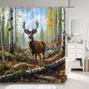 Hirsch Duschvorhang Tiefer Wald Herbst Natur Landschaft Tier Erntedank Polyester Duschvorhänge Badezimmerdeko mit Haken