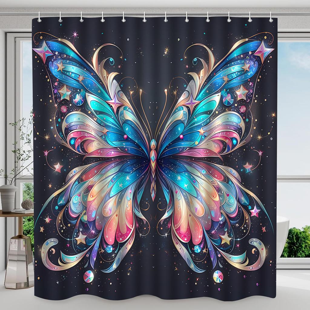 Butterfly Pattern Shower Curtain, Elegant Polyester, Multifunctional Bathroom Partition, Machine Washable, All-Season Decor