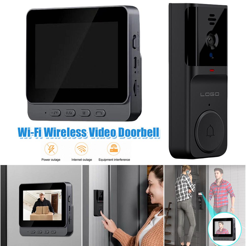 Wireless Doorbell 2.4G Wi-Fi Smart Video Doorbell 4.3Inch IPS Display Video Intercom Doorbell 2 Way Audio Infrared Night Vision